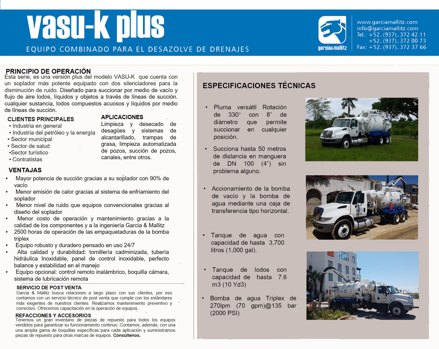 - Menor costo operativo por componentes de alta calidad e ingeniería García & Mallitz.